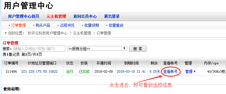 * 开设成功后,点击查看账号,获取远控信息如图: