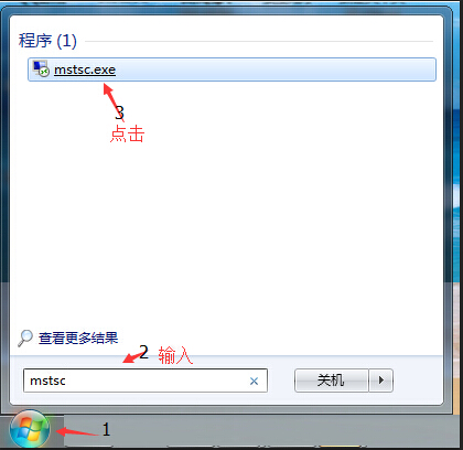 1.点击自己电脑的开始菜单,在搜索框中输入mstsc,如下图所示