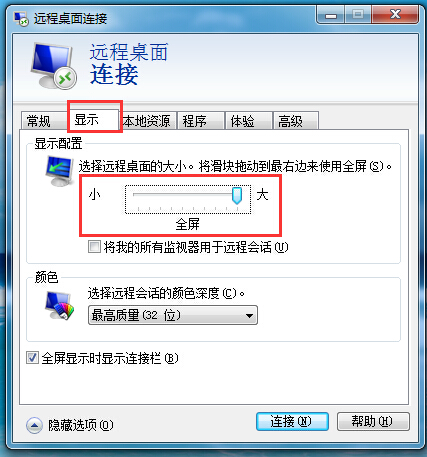 4.如果需要{全屏运行}改显示分辩率,请点击图片中的“显示”选项卡,在下图所示位置选择分辩率
