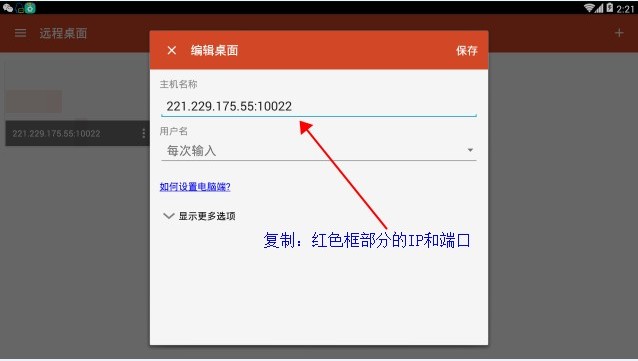 6.复制计算机[红色框部分]的ip和端口(注意不要复制到空格)