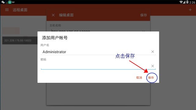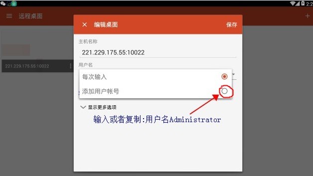 8.复制用户名[红色框部分]Administrator密码留空不要填写!!然后点击保存