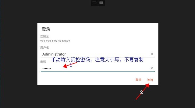 10.手动输入远控密码[红色框部分],然后选择连接!
