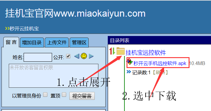 2.点击挂机宝远控软件,选中秒开云安卓手机远控软件如图1.2: