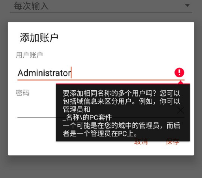 1.提示:要添加相同名称的多个用户名吗?如图