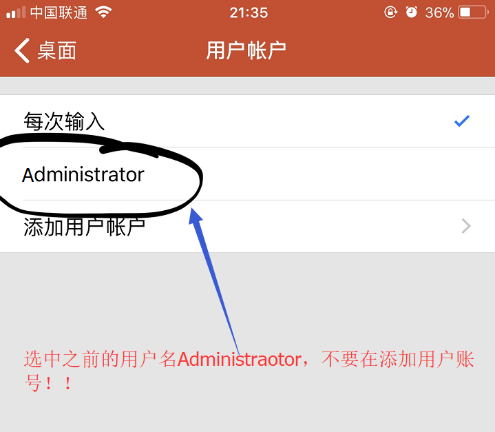 3.选中之前使用的用户名Administrator【