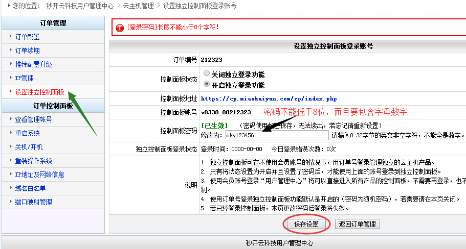 控制面板地址https://cp.miaokaiyun.com/cp/index.php