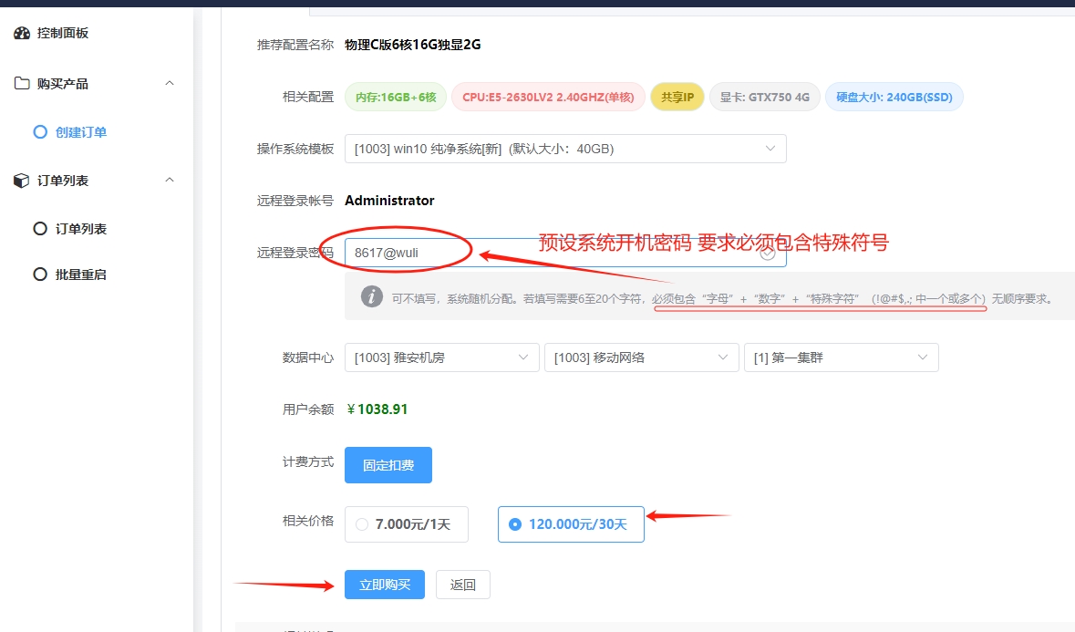 4.开通产品 预设开机密码必须包含“字母”+“数字”+“特殊字符”(!@#$,.; 中一个或多个)无顺序要求1