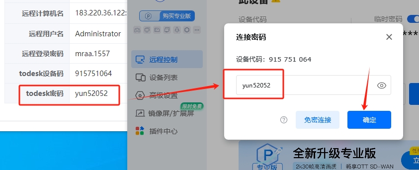 填入todesk密码
